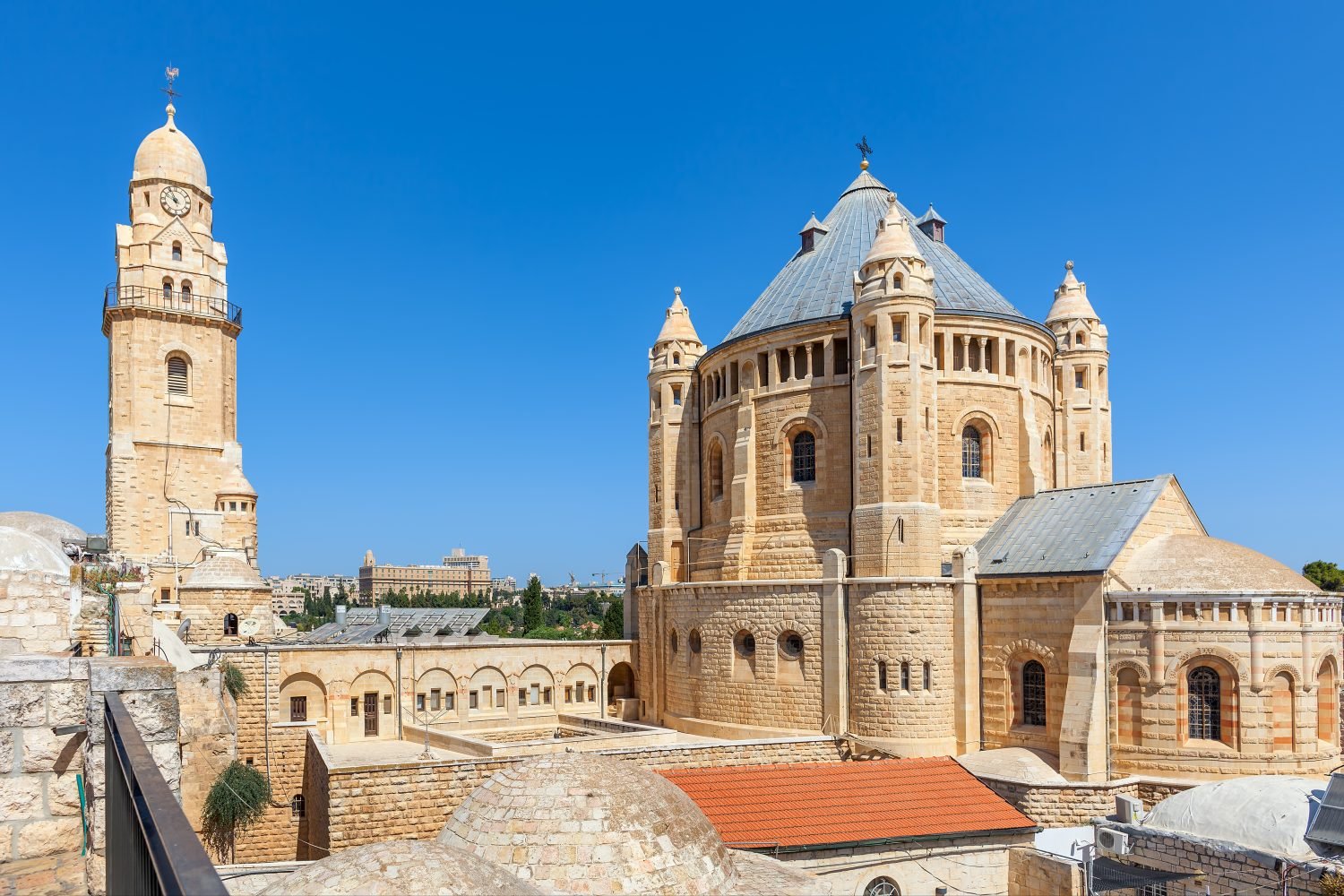 Gruta de São Gerônimo, Campos dos pastores. Tarde: Visita ao Monte Sião, ao Cenáculo, Igreja da